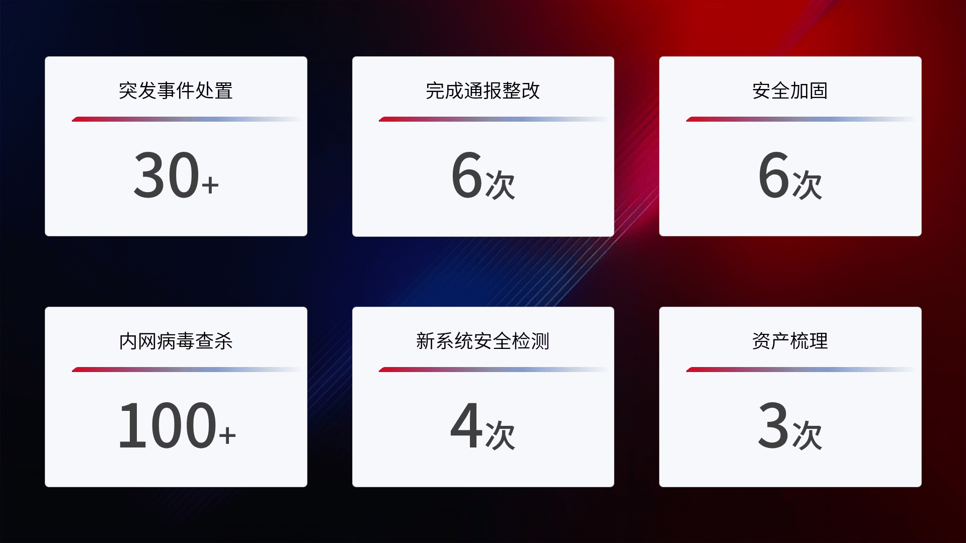 网络安全加固与风险管理:通过技术加固手段,,,,如加强区域隔离,,,,缩减攻击内网横向移动的范围;优化现有网络安全管理制度,,降低网络威胁暴露面,,,,减少被黑客攻击的可能性。。。